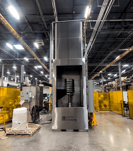 Better Engineering provided a fully custom PD-5000 aqueous parts washer, explicitly designed to flush, rinse, and dry heat exchanger coils in a safe and repeatable process. This industrial parts washer was engineered to ensure reliable washing of internal passageways and full drying with zero residual moisture in a 5-minute cycle time, critical for downstream packaging and storage.